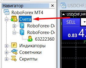 Новый счет появится во вкладке «Счета» в окне «Навигатор».